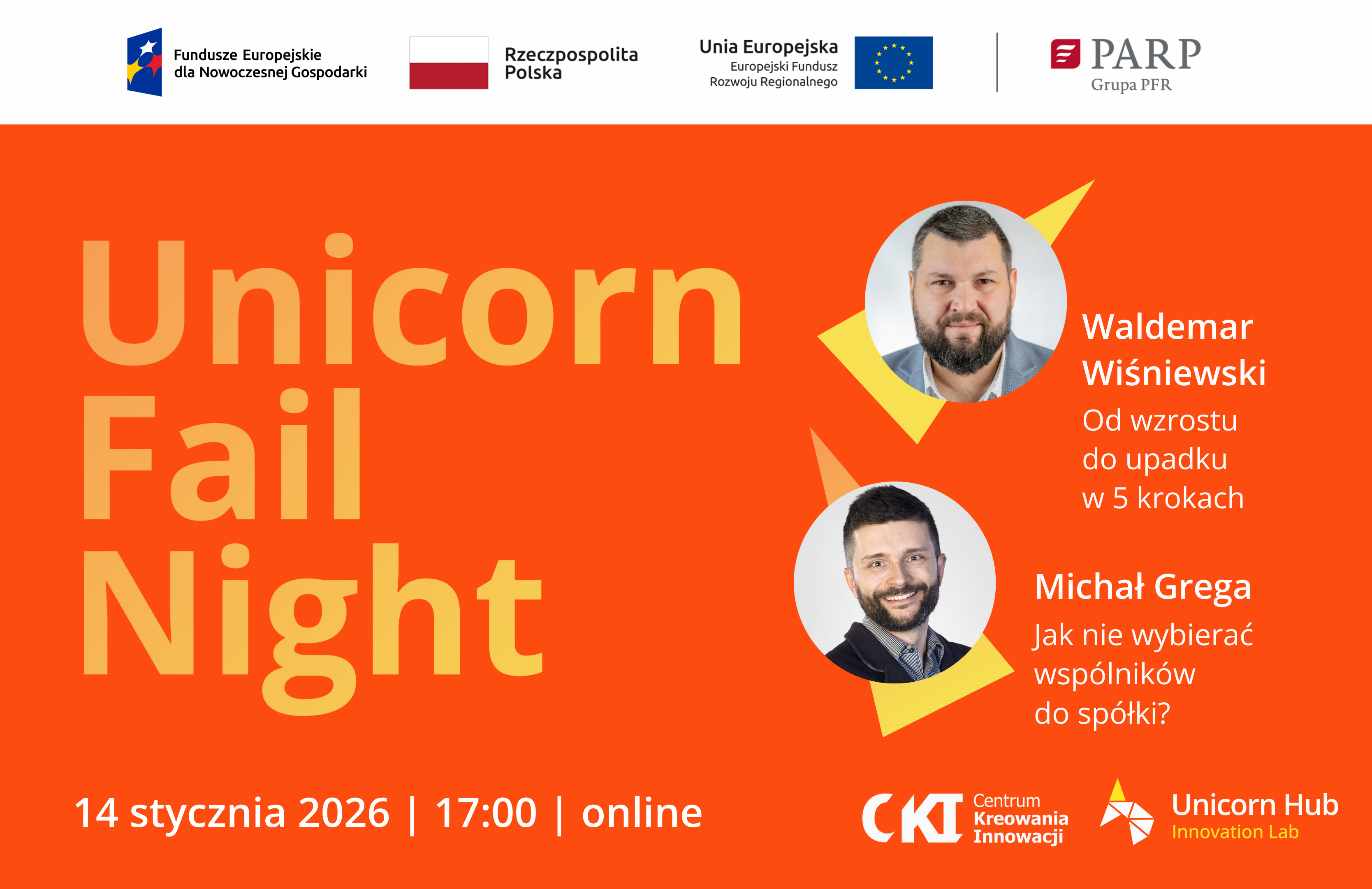 !Unicorn Fail Night wraca online 14 stycznia 2026 r. (17:00–19:00)! To spotkanie o realnych błędach, trudnych decyzjach i lekcjach, które okazują się cenniejsze niż spektakularne sukcesy.